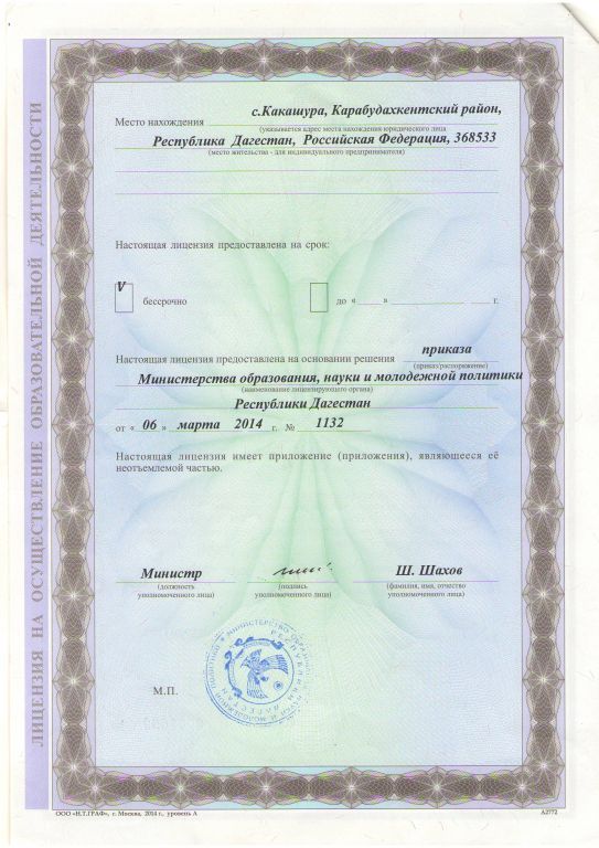 Адрес местонахождения образовательной организации* 368533, Республика Дагестан, Карабудахкентский район, с. Какашура, ул. Ленина 4